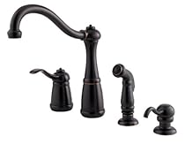 Find discount Pfister F0264NYY Marielle High-Arc 4-Hole Single Control Kitchen Faucet, Tuscan Bronze Price Pfister F-026-4NYY Marielle Single Handle Kitchen Faucet, Tuscan Bronze Features: 4 Hole High Arc Spout Decorative Side Spray Matching soap dispenser Price Pfister F-026-4NYY Marielle Single Handle Kitchen Faucet, Tuscan Bronze Single control 4-hole with side spray and soap dispenser Vintage French Country design has set its sights on the American kitchen The Marielle, a single control faucet with coordinating side
