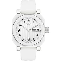 Zodiac ZO8808 Durable mineral crystal; Polished stainless steel case with white ceramic casing; White rubber strap Day and date function ...